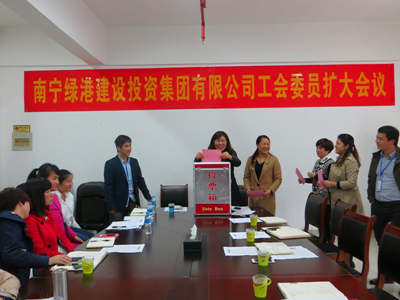 當天下午,綠港集團全體職工代表參加了工會委員擴大會議,通過了工會主席、工會副主席選舉辦法,經過在職工會委員投票,全票通過工會主席、副主席候選名單。通過選舉,綠港集團工會主席由集團公司總經理助理黃麗琴擔任、工會副主席由集團公司辦公室副主任蒙歆芬擔任。