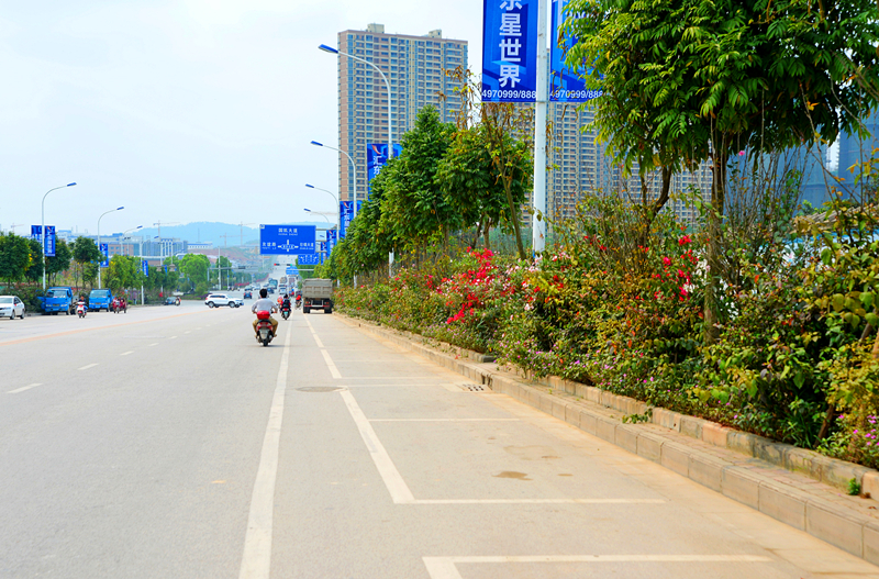 本項目位于金陽路,于2014年12月開工,2015年1月完工,綠化面積約2700㎡,種植主要品種有:人面子、黃金香柳、夾竹桃、、硬枝黃蟬、紅繼木、三角梅等