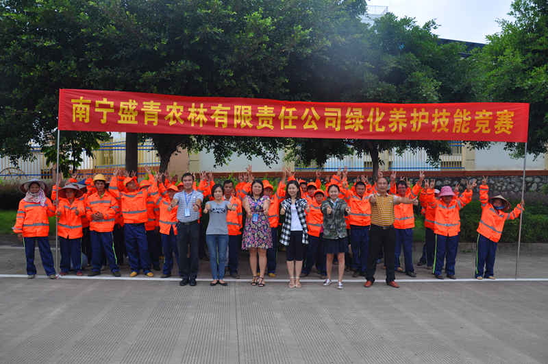 715日上午9時(shí)許,南寧江南區(qū)同興路兩旁陽光熱辣,機(jī)器的轟鳴聲此起彼伏,70多名身著橘黃色衣服的綠化養(yǎng)護(hù)工人上下忙得汗流浹背:這里正在舉行盛青公司首屆綠化養(yǎng)護(hù)技能競(jìng)賽。