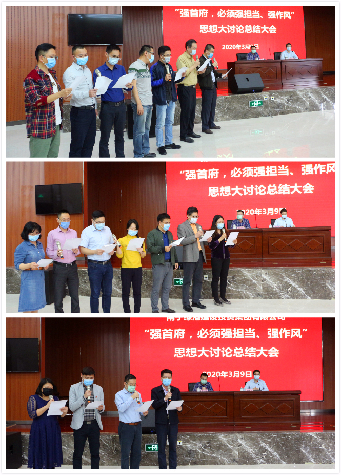 最后,集團(tuán)黨委書記、董事長(zhǎng)龔國(guó)強(qiáng)對(duì)本次思想大討論活動(dòng)開展情況進(jìn)行了總結(jié)點(diǎn)評(píng),并要求各部門、各子公司認(rèn)真踐行諾言,落實(shí)落細(xì)措施,確保取得良好成效。龔書記表示,當(dāng)前疫情形勢(shì)依然嚴(yán)峻復(fù)雜,全國(guó)各地都在做好疫情防控的前提下,出臺(tái)了一系列政策措施,搶開局、穩(wěn)經(jīng)濟(jì)、促發(fā)展。綠港集團(tuán)在疫情防控的關(guān)鍵時(shí)刻召開這次總結(jié)會(huì),就是要進(jìn)一步營(yíng)造一心一意謀發(fā)展的濃厚氛圍,形成全力以赴落實(shí)強(qiáng)首府戰(zhàn)略的強(qiáng)烈共識(shí),傳遞出疫情防控和經(jīng)濟(jì)發(fā)展兩手抓、兩手都要硬的鮮明導(dǎo)向和強(qiáng)烈信號(hào),為實(shí)現(xiàn)集團(tuán)公司高質(zhì)量發(fā)展的“加速度”,全力以赴完成好新的一年集團(tuán)公司的各項(xiàng)發(fā)展任務(wù)目標(biāo)。作為經(jīng)開區(qū)最大的平臺(tái)公司,2020年年初以來,綠港集團(tuán)緊緊圍繞“強(qiáng)首府,必須強(qiáng)擔(dān)當(dāng)、強(qiáng)作風(fēng)”的總體要求,著重在“學(xué)精神、查不足、求改變、強(qiáng)擔(dān)當(dāng)”上下功夫,針對(duì)如何解決六個(gè)方面突出問題、如何克服十種突出現(xiàn)象以及如何在八種情形下運(yùn)用容錯(cuò)糾錯(cuò)機(jī)制,結(jié)合工作實(shí)際,群策群力開展了三次專題思想大討論活動(dòng),通過查深、查透、立行立改,有力轉(zhuǎn)變了作風(fēng),進(jìn)一步提高了干部職工的緊迫感、使命感,為全面落實(shí)強(qiáng)首府戰(zhàn)略,奮力譜寫集團(tuán)公司高質(zhì)量發(fā)展新篇章凝聚了共識(shí),集聚了動(dòng)力。