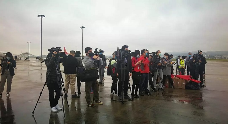 廣西各醫(yī)院代表在南寧吳圩機場做好接機準備,迎接支援湖北醫(yī)護人員凱旋。