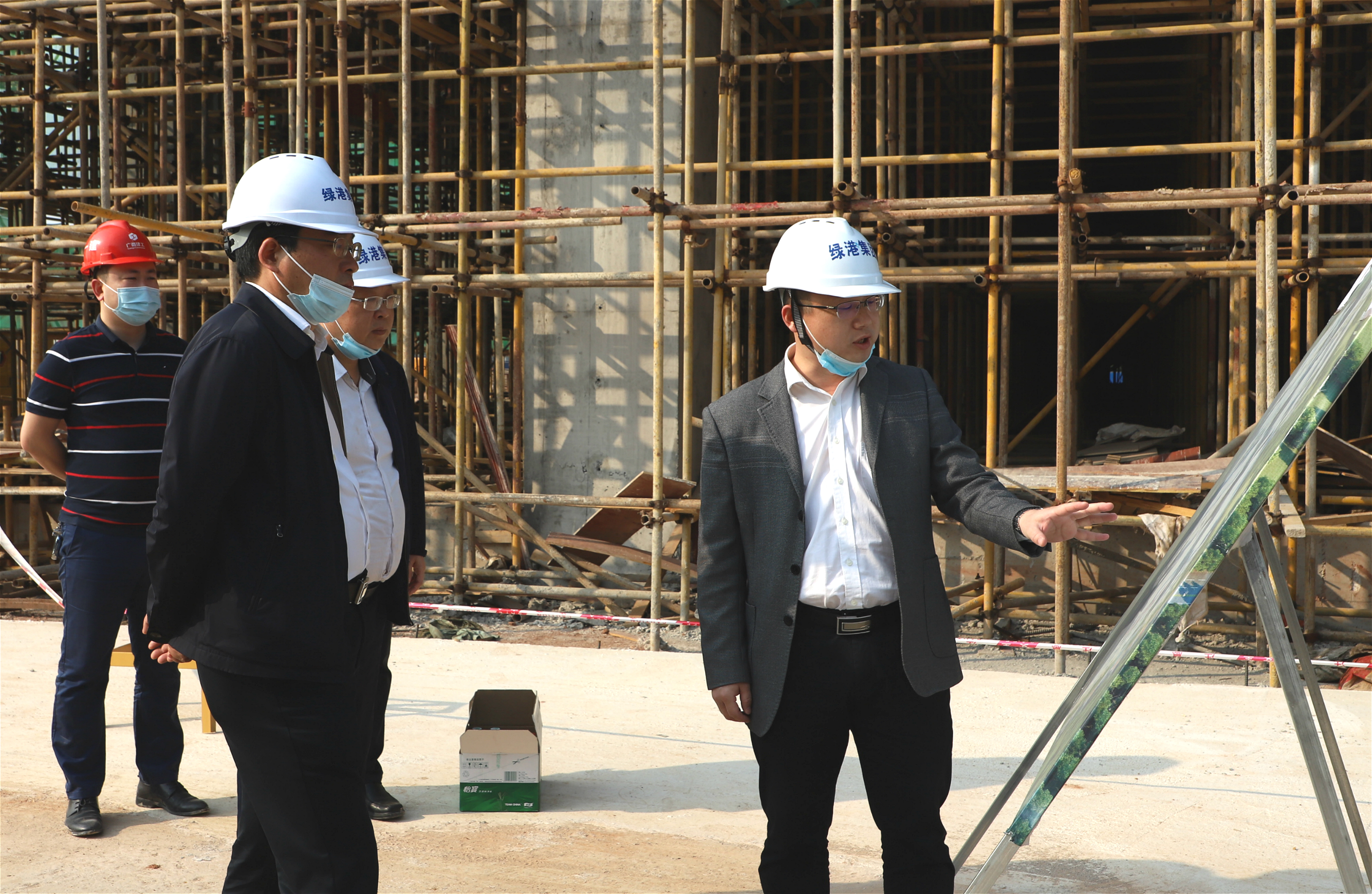 南寧市副市長(zhǎng)朱會(huì)東到項(xiàng)目現(xiàn)場(chǎng)了解項(xiàng)目建設(shè)情況,綠港集團(tuán)董事長(zhǎng)龔國(guó)強(qiáng)陪同