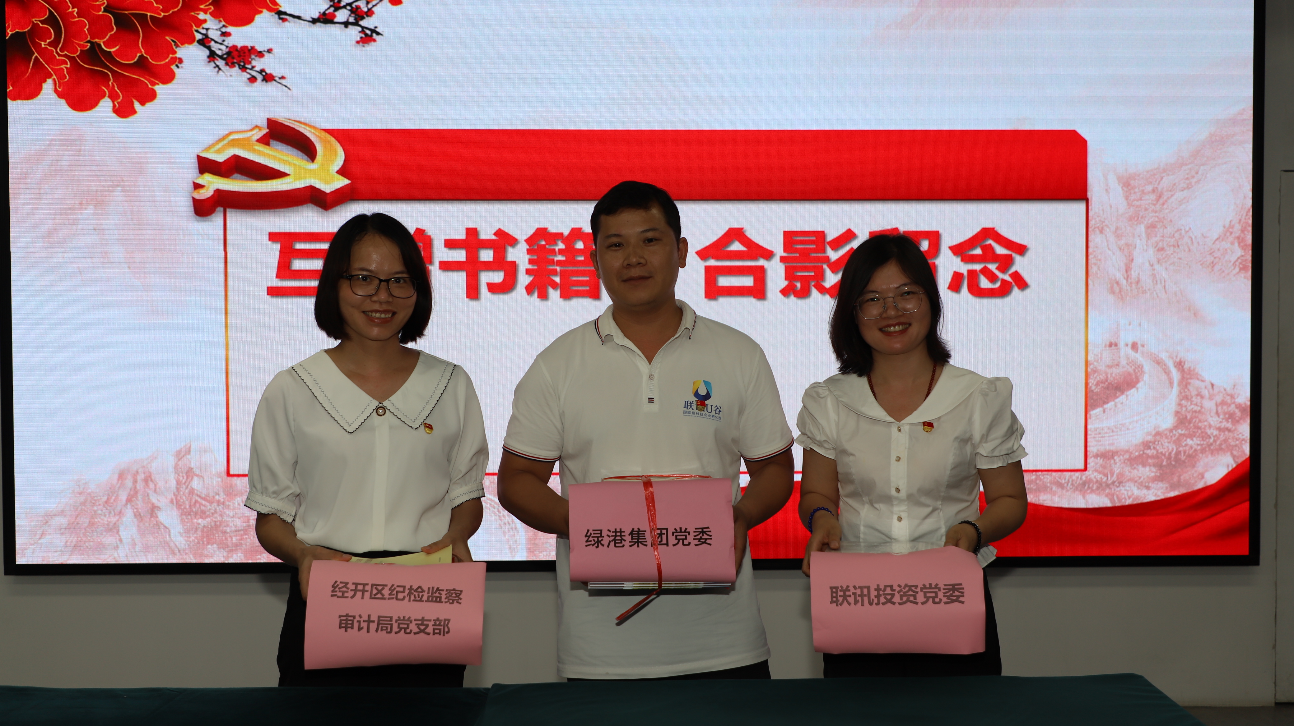 綠港集團黨委與廣西聯(lián)訊黨委、南寧經(jīng)開區(qū)紀檢監(jiān)察審計局黨支部互贈黨史學(xué)習(xí)教育書籍