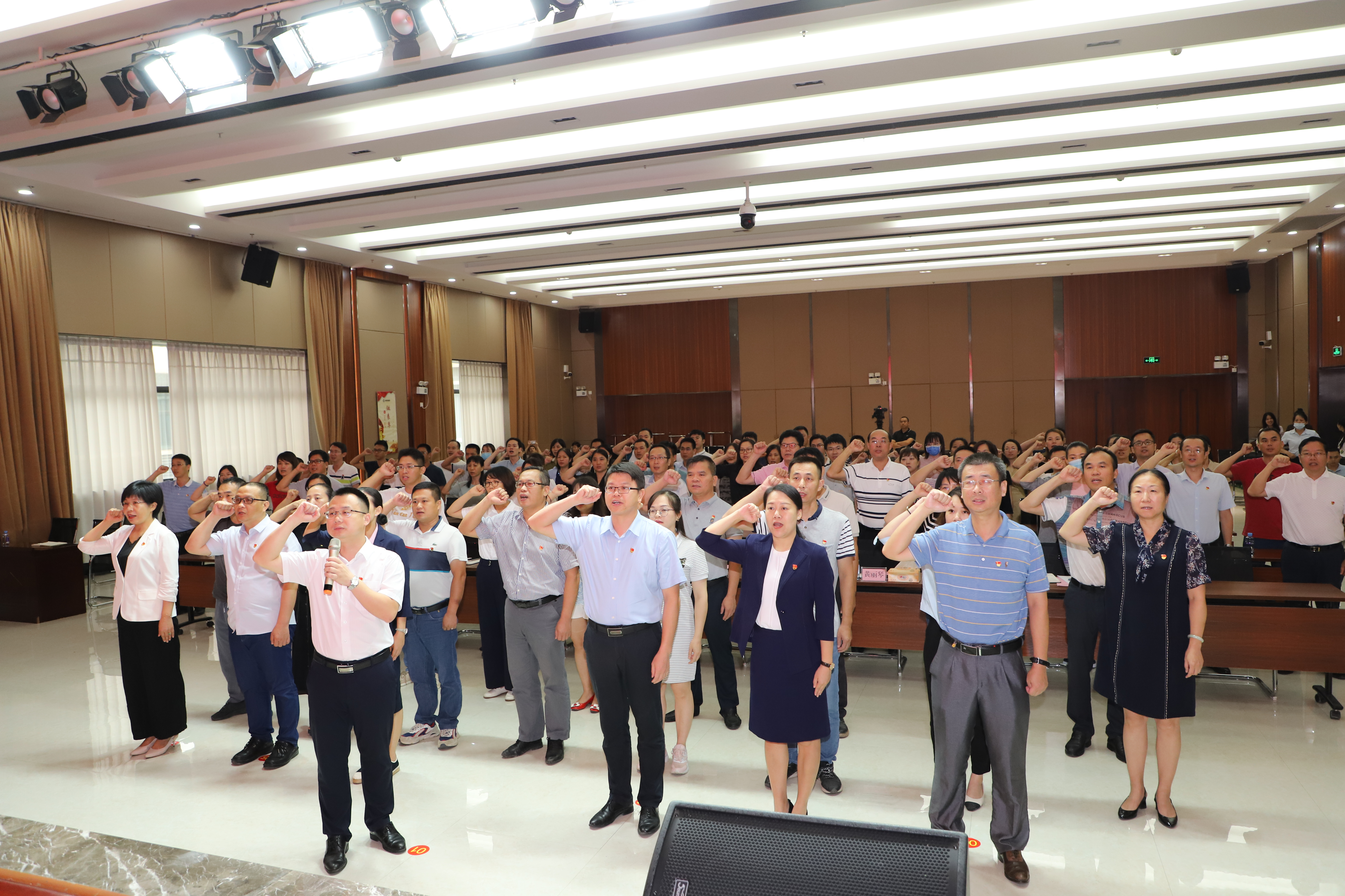 “我志愿加入中國(guó)共產(chǎn)黨,擁護(hù)黨的綱領(lǐng),遵守黨的章程,履行黨員義務(wù)……”迎著黨旗、舉起右拳,在集團(tuán)黨委書(shū)記、董事長(zhǎng)龔國(guó)強(qiáng)的帶領(lǐng)下,綠港集團(tuán)7名新入黨黨員莊嚴(yán)地宣讀了入黨誓詞、98名老黨員同志重溫了入黨誓詞,大家在入黨誓詞中回顧初心,銘記宗旨,接受了一次心靈的洗禮。