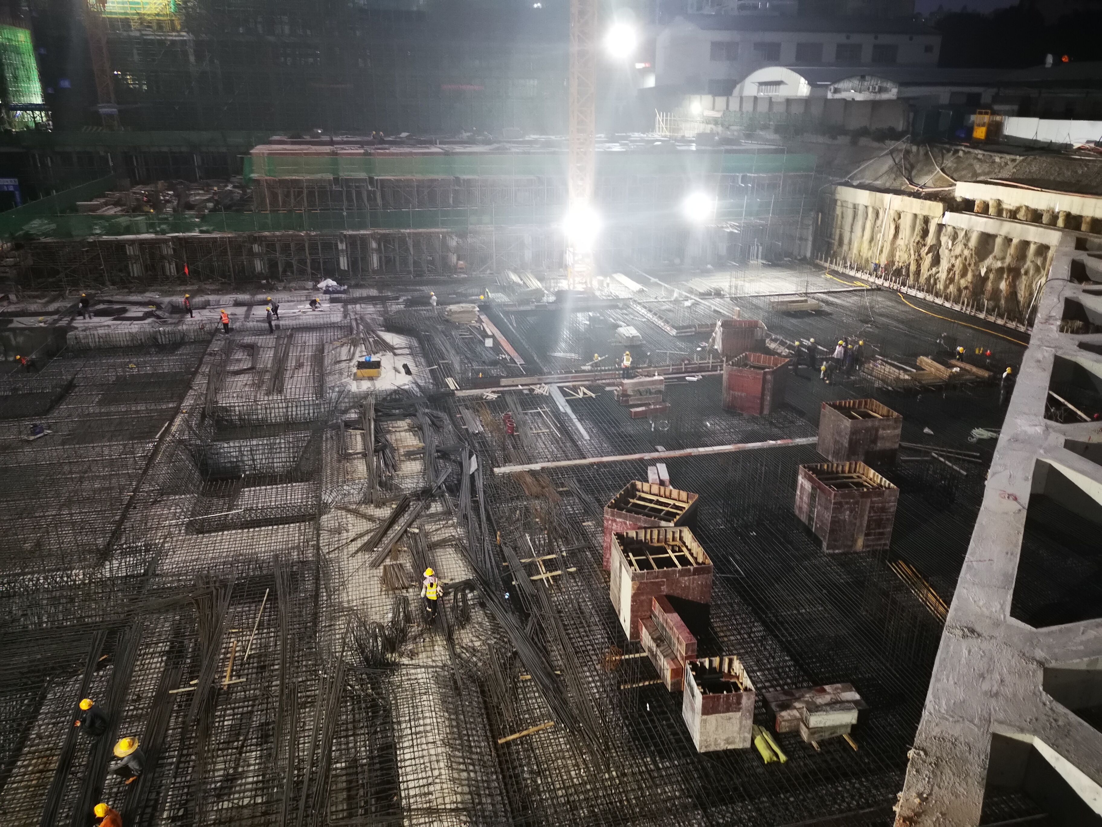在完成支護樁施工及土方外運工作后,接下來就是緊張的基礎(chǔ)及地下室施工,在剩下不到40天的時間里完成兩層地下室施工,這是一場與時間賽跑的大戰(zhàn)。推進小組全體成員頂住壓力,緊盯5月31日預售節(jié)點目標,開足馬力全力推進項目建設加速跑。推進小組實行每天碰頭會,每周安全生產(chǎn)推進會,按照工期節(jié)點倒排施工計劃,層層細化每日施工任務,持續(xù)加強內(nèi)外溝通。依據(jù)工程進展情況,督促施工單位同時展開多個作業(yè)面,增加施工人員及機械設備的投入,采取倒班等措施搶回時間,保證施工現(xiàn)場做到“見縫插針、動態(tài)管控”。經(jīng)過項目推進小組及參建各方2個多月的日夜奮戰(zhàn),項目8#、6#樓于4月12日、5月13日提前完成主體結(jié)構(gòu)封頂;3#樓5月27日提前完成±0.00層達到預售節(jié)點;在臨時增加工程量的情況下, 1#樓于6月5日完成集團公司設定的項目預售節(jié)點攻堅目標。