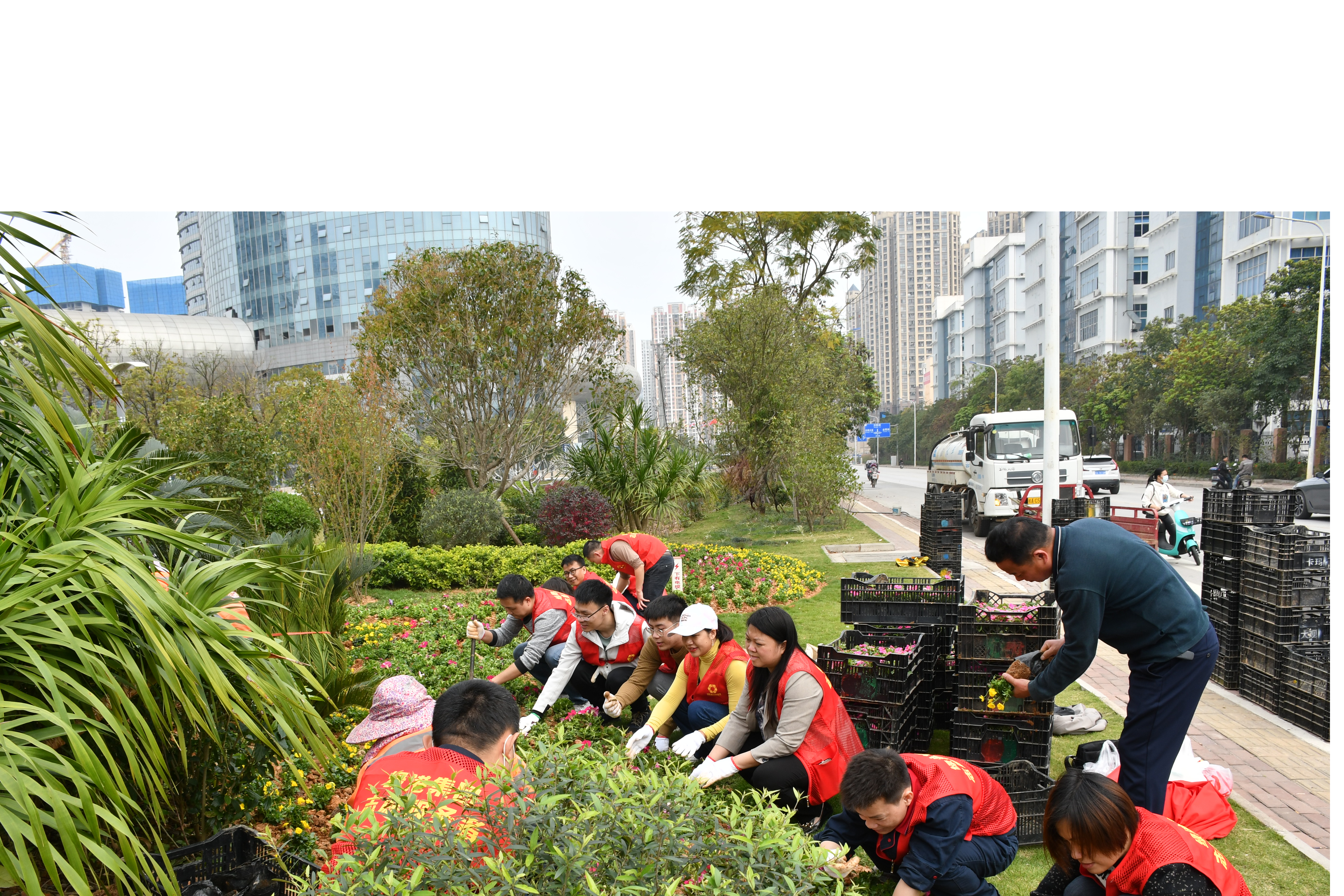 活動現(xiàn)場,志愿者們熱情高漲,在園林種植技術(shù)人員講解種植要點后,大家兩人一組,開始種植。挖坑、栽苗、培土、踩實,有序地將一顆顆綠植栽種入土,活動現(xiàn)場一片熱火朝天景象。經(jīng)過一個上午的辛勤勞作,花圃里就種滿了2000多棵綠植,連片規(guī)范的花草錯落有致、迎風挺立,呈現(xiàn)出一派生機盎然的景象,為城市增添了一抹新綠。