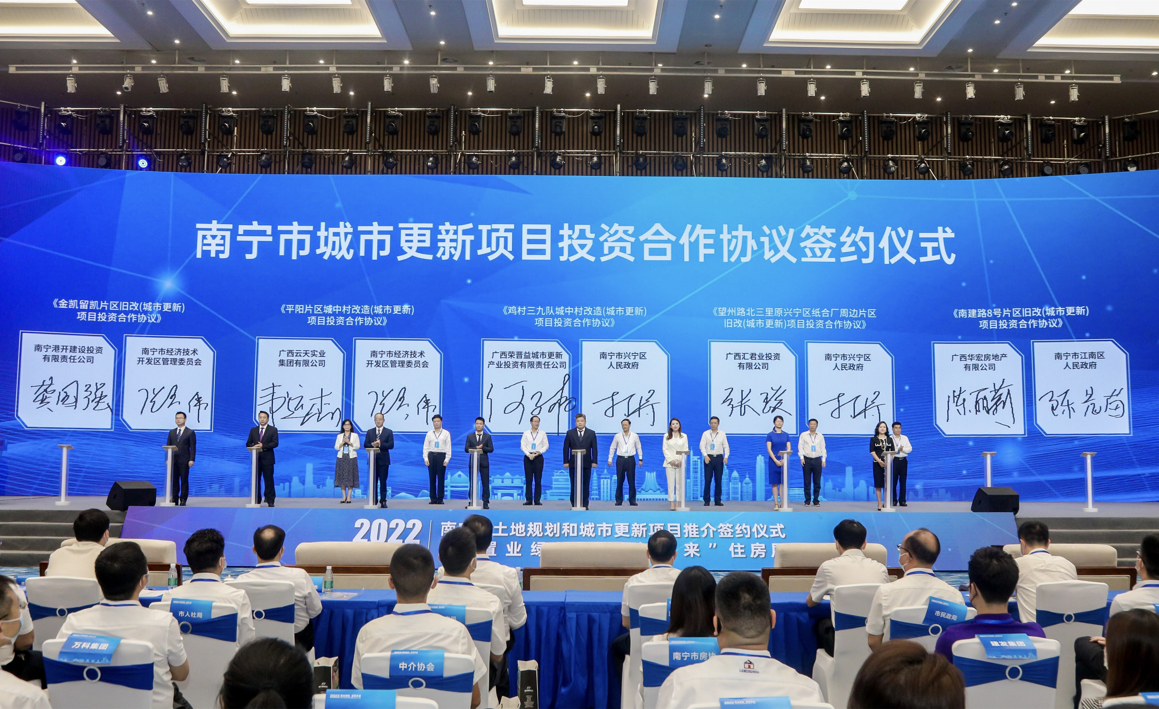 6月18日上午,2022年南寧市土地規(guī)劃和城市更新項(xiàng)目推介簽約儀式暨“置業(yè)綠城 邕有未來”住房展開幕式于南寧國際會(huì)展中心金桂花廳舉行。綠港集團(tuán)下屬控股子公司南寧港開建設(shè)投資有限責(zé)任公司(簡稱港開公司)受邀出席活動(dòng),綠港集團(tuán)黨委書記、董事長龔國強(qiáng)代表港開公司與經(jīng)開區(qū)管委會(huì)簽訂《金凱留凱片區(qū)舊城改造(城市更新)項(xiàng)目投資合作協(xié)議》,成為金凱留凱片區(qū)舊城改造(城市更新)項(xiàng)目的土地熟化投資人。這標(biāo)志著金凱留凱片區(qū)舊城改造項(xiàng)目正式進(jìn)入實(shí)質(zhì)性實(shí)施階段,助力經(jīng)開區(qū)舊城改造進(jìn)程再次邁上“加速度”的新臺(tái)階。