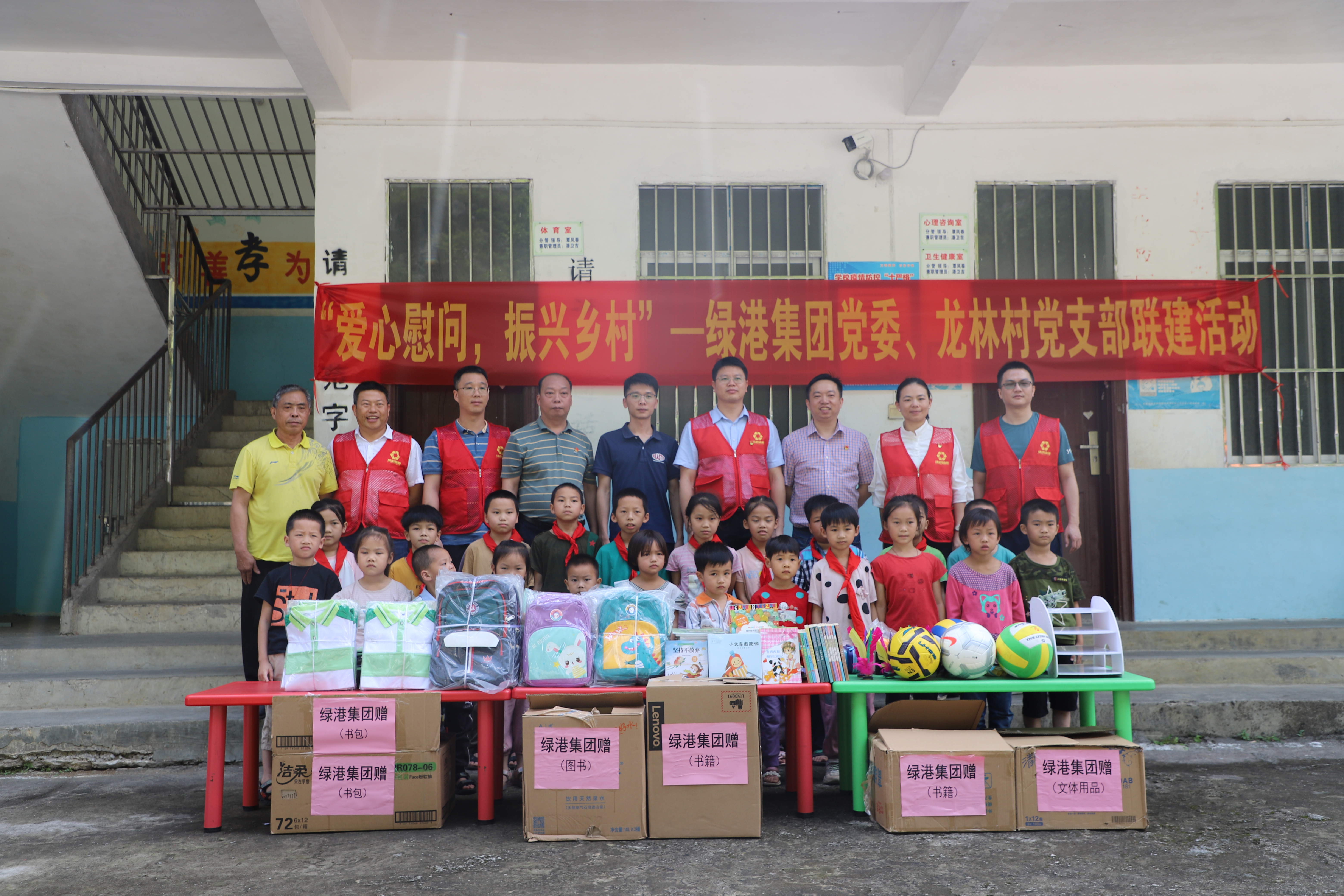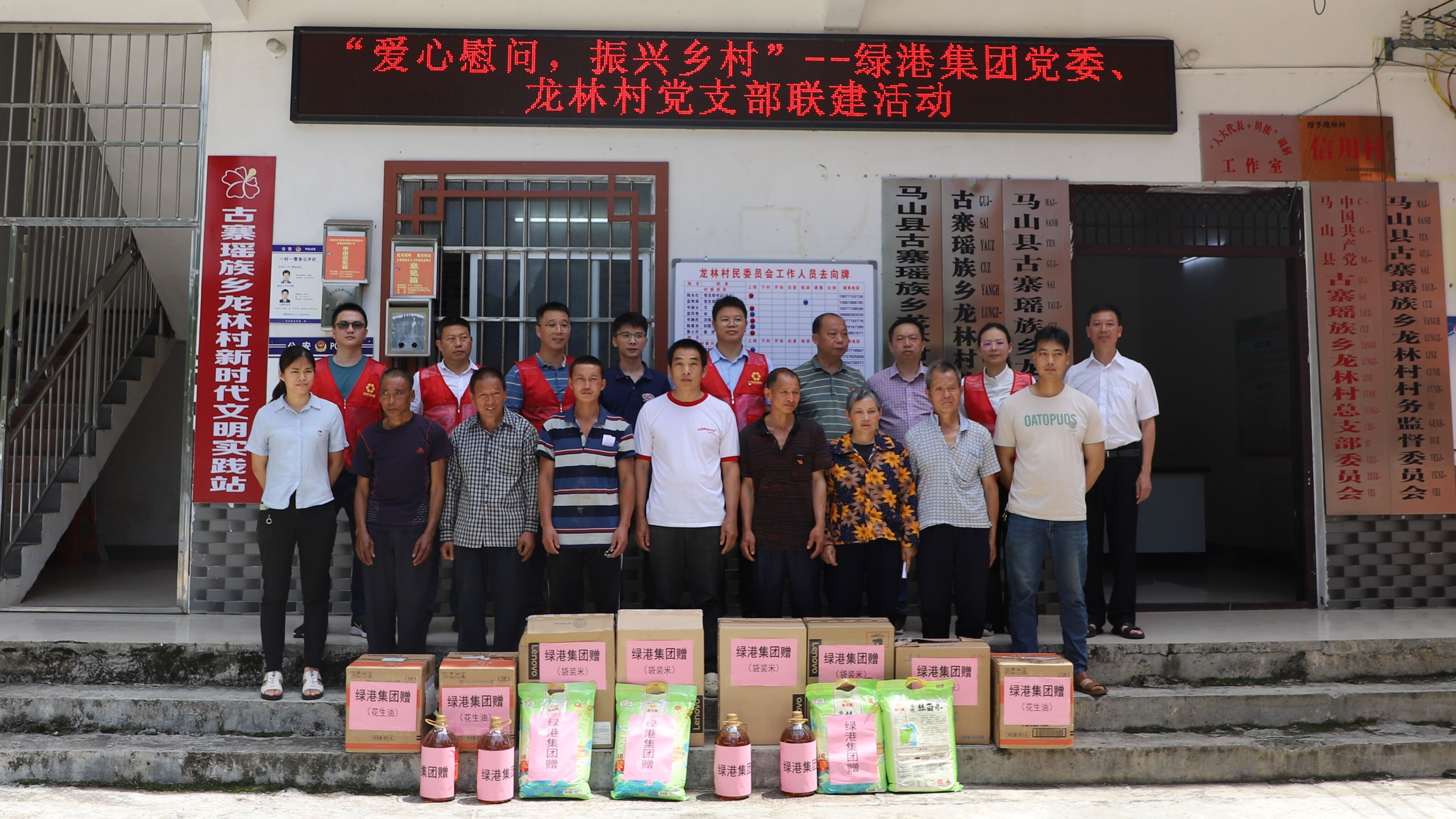 5月29日,綠港集團(tuán)黨委副書(shū)記、總經(jīng)理鄧?yán)^慧,黨委委員、副總經(jīng)理陸?hù)啾?/span>,黨委委員、副總經(jīng)理陽(yáng)正輝,以及集團(tuán)黨委辦和萬(wàn)方公司黨支部的部分同志代表集團(tuán)黨委,到對(duì)口幫扶的馬山縣古寨瑤族鄉(xiāng)龍林村開(kāi)展村企聯(lián)建慰問(wèn)活動(dòng)。綠港集團(tuán)派駐龍林村第一書(shū)記梁華以及龍林村干部、駐村工作隊(duì)員一起參加了活動(dòng)。