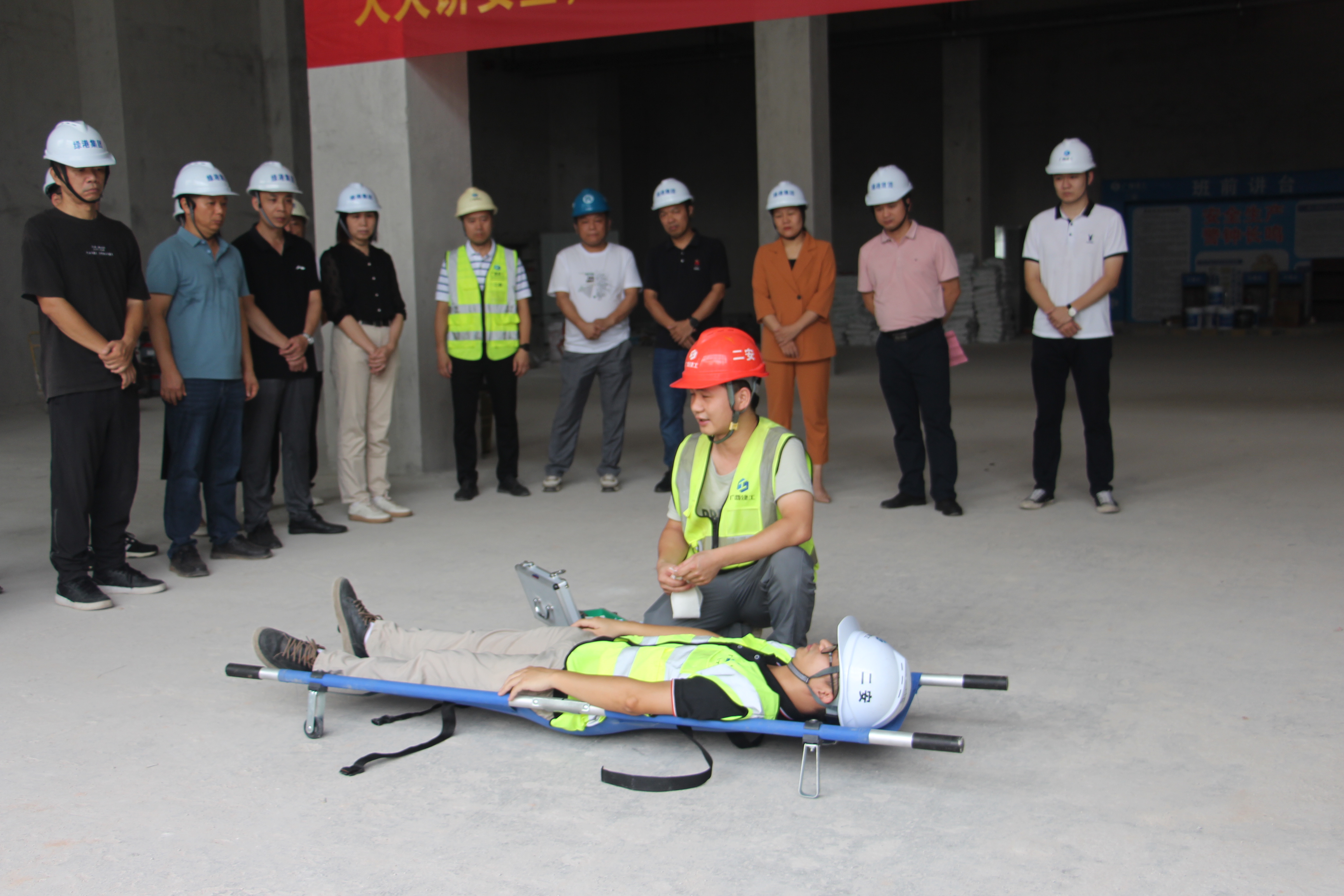 6月20日,嘉通公司在綠港·雙創(chuàng)城項目現(xiàn)場2023年“安全月” 救援及消防應急演練活動。雙創(chuàng)城項目負責人就高處墜落、物體打擊的救援處置和項目火災應急處置等相關知識進行了講解。隨后,進行了傷口包扎、心肺復蘇、醫(yī)療急救以及滅火器操作演練。