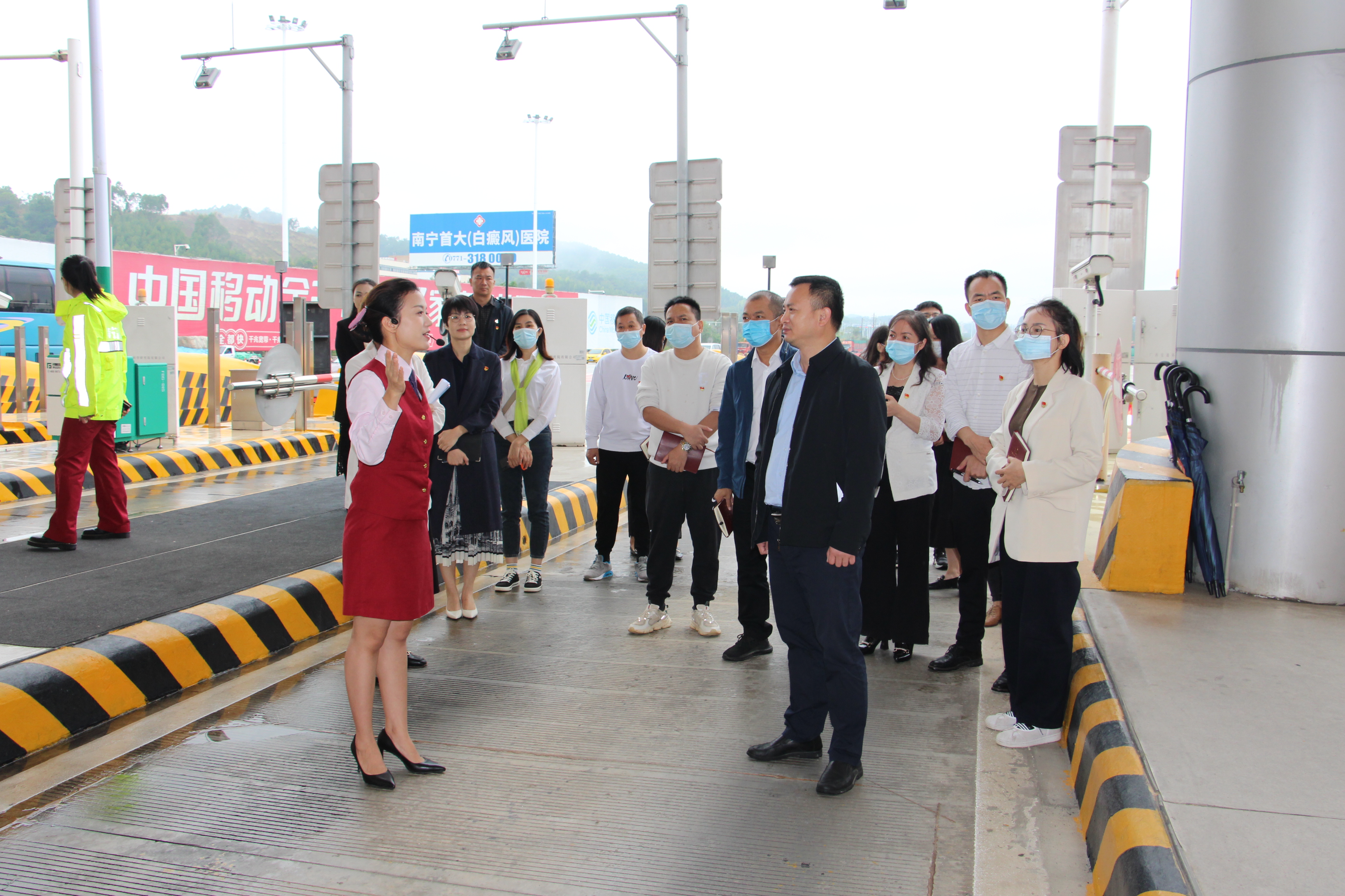 嘉通公司黨支部黨員們參觀了廣西交投高速公路運營有限公司南寧東收費站的地下文化長廊、黨員活動室、勞模工作室、班組室、書巢等,聽取了廣西交投集團廣西交通投資集團南寧高速公路運營有限公司人事黨群部馮主任介紹公司發(fā)展歷程、人才發(fā)展、企業(yè)文化與主要成績、以及黨的二十大代表、全國勞動模范農(nóng)鳳娟同志的先進(jìn)典型事跡,并在書巢就學(xué)習(xí)宣傳貫徹落實黨的二十大及黨建工作經(jīng)驗等方面進(jìn)行座談。